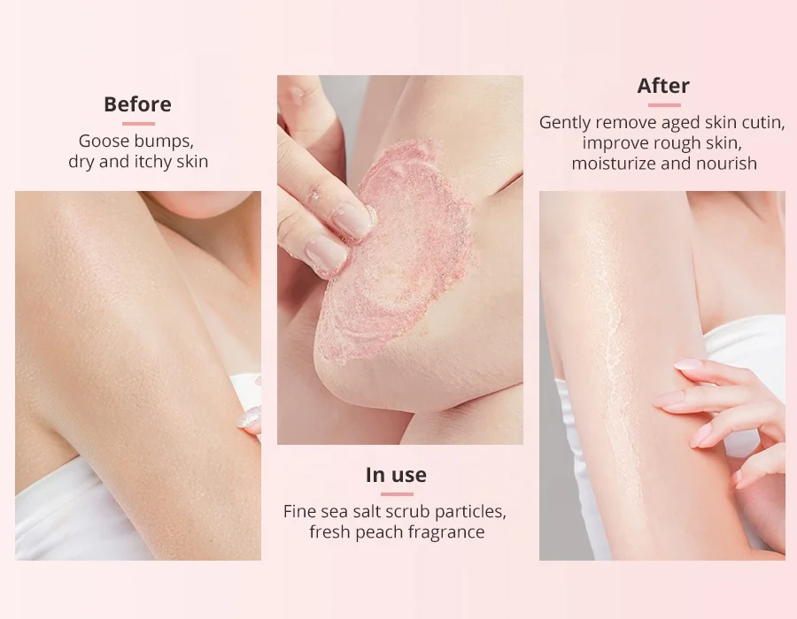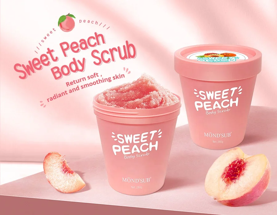 Organic Vegan Whitening Skincare Logo Peach Clear Fruit Wholesale Custom Private Label Natural Salt Body Scrub